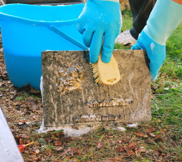 - Nettoyage de la pierre tombale (nettoyage, dépoussiérage, enlèvement des mauvaises herbes…).